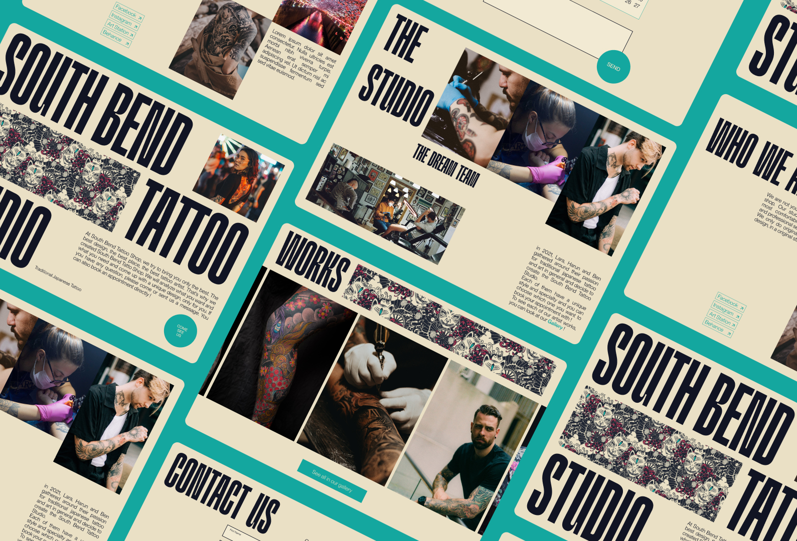 South Bend Tattoo Studio, un salon de tatouage établi à Los Angeles, cherchait à faire connaître sa marque lors de son lancement. Ils ont donc sollicité mes services pour la création d'un branding personnalisé ainsi que pour le design complet de leur site web afin de refléter leur identité unique.